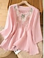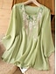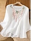 Жен. Для миниатюрных Рубашка Полотняное плетение Богемия Симпатичные Стиль Стиль Рукав до локтя Рукава буффы Круглый вырез Обычные топы Повседневные На выход выходные Вышивка