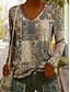 Жен. Туника Футболка Леопард Контрастных цветов Буквы Винтаж Стиль На каждый день Длинный рукав V-образный вырез Обычные топы Повседневные Спорт выходные С принтом Розовый Синий Коричневый Зеленый