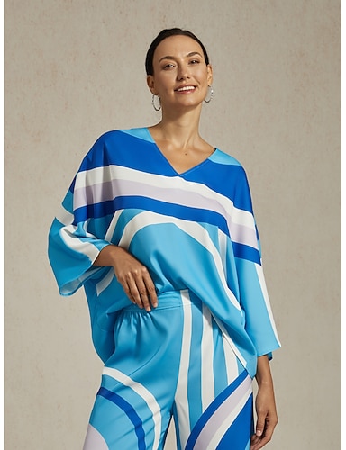 Жен. Подходящие топы Рубашки-пончо Плед / В полоску / Шеврон Отпуск На каждый день Мадьярский рукав Multi Color С принтом геометрический Люстры и лампы Рукава 3/4 Пляжный стиль V-образный вырез