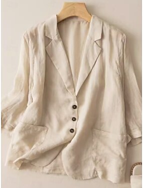 Жен. Блейзер Дышащий Удобный Пуговицы Карман На каждый день Полотняное плетение Офис Для улицы Повседневные На каждый день Однобортный крой Обычная Отложной Стандартный Длинный рукав Верхняя одежда