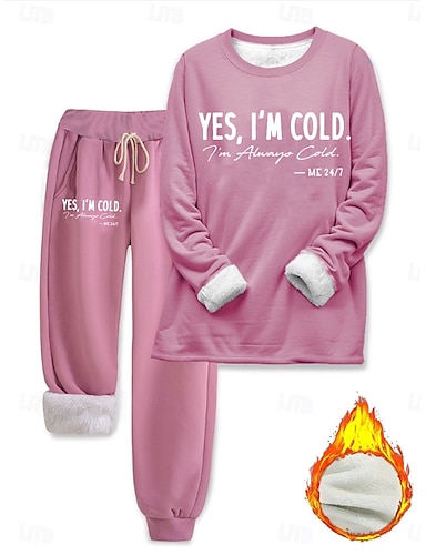 Женский комплект пижам с флисовой подкладкой 2 предмета свитшот спортивные костюмы спортивные костюмы верх и брюки текст теплый комфорт мягкий домашний повседневный постельный теплый дышащий круглый