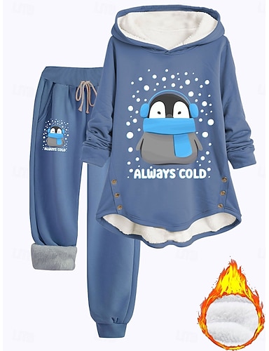 Жен. Теплый Повседневные Комплекты из двух предметов Спортивный костюм Комплекты брюк Длинный рукав Капюшон Графика Животное Полотняное плетение Кулиска С принтом Повседневные