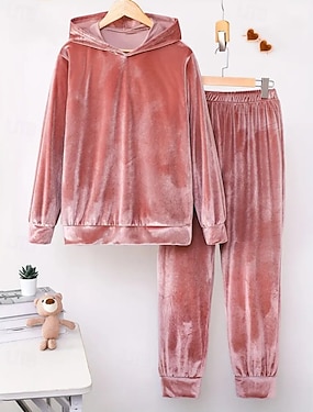 Жен. Активный Уличный стиль Блуза Толстовка Комплекты брюк Длинный рукав Капюшон Сплошной цвет Рюши Отпуск На каждый день Розовый Винный Синий Осень Стандартный
