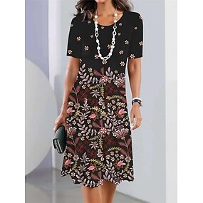 Жен. Платье средней длины Повседневное платье Платье A-силуэта Летнее платье Платье в стиле бохо Гавайский Стиль Отпуск Повседневные Свидание Стандартный Цветочный принт С короткими рукавами