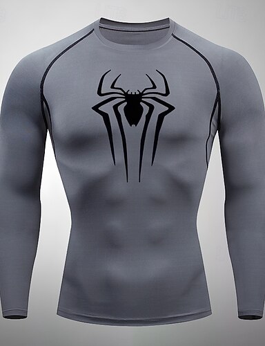 Муж. Компрессионная футболка Спортивная рубашка Фитнес-рубашка Длинный рукав Футболка Футболка Повседневные Одежда для спорта и отдыха Осень Пауки Быстровысыхающий Мягкий Дышащий
