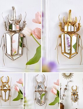 скульптура жука-оленя из золота и серебра из смолы, украшение для дома, настенное украшение с зеркальной инкрустацией, уникальный дизайн для любителей насекомых, коллекционный предмет для семейных