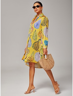 Жен. Платье-рубашка Платье средней длины Абрикосовый Без рукавов Графика Пуговицы С принтом Лето Рубашечный воротник Отпуск XS S M