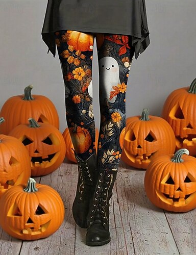 Жен. Брюки Леггинсы Уютные леггинсы Уличный стиль На каждый день Полная длина ЗавышеннаяPantsHalloween Тыква Эластичная талия С принтом Воздухопроницаемость Удобный Эластичная
