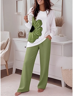 Комплект из 2 предметов для женщин элегантная мода уличная майка брюки широкие брюки с длинным рукавом круглый вырез графическая печать повседневная ежедневная синяя зеленая осень и зима обычная