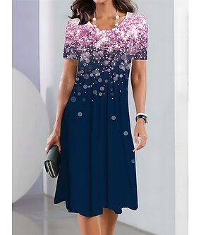 Платье миди для женщин омбре цветочный принт круга повседневные свидания короткий рукав лето весна