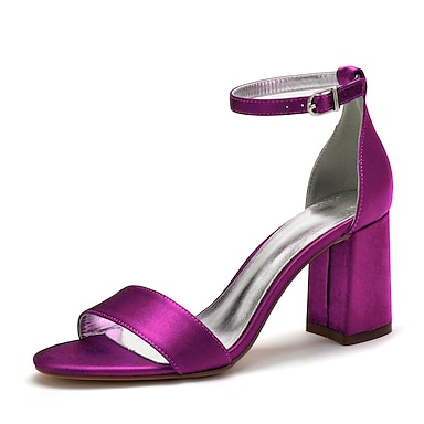 женские фиолетовые атласные свадебные туфли на блочном каблуке - элегантные свадебные босоножки с открытым носком и ремешком на щиколотке для официальных мероприятий и вечеринок