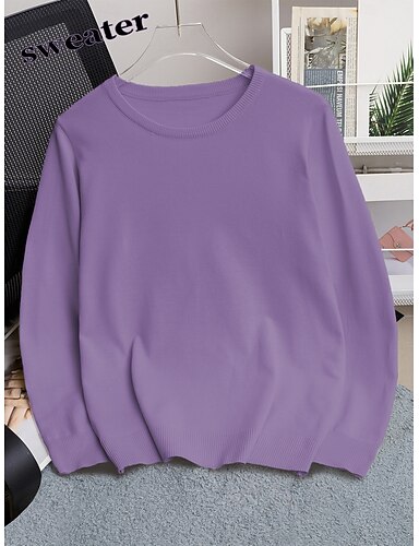 женский свитер пуловер свитер джемпер круглый вырез вязать вязаный весна осень домашний повседневный праздничный повседневный мягкий длинный рукав чистый цвет розовый красный