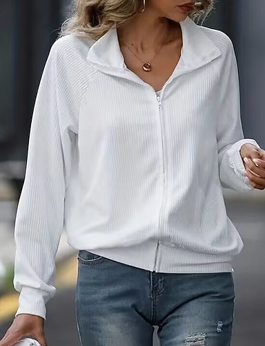 Жен. Вязаное пальто для отдыха Куртка на молнии Длинный рукав Верхняя часть Одежда для спорта и отдыха Однотонный Мода Тренажерный зал Бег Фитнес Спортивная одежда Спортивная одежда