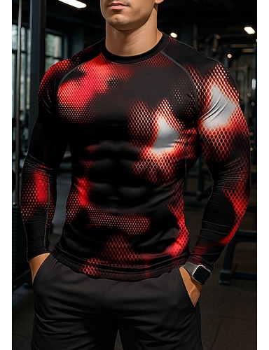 Муж. Компрессионная футболка Футболка для бега 3D печать Длинный рукав Основной слой Абстракция Быстровысыхающий Сжатие видеоизображений Для тренировки Power Flex Влагоотводящие