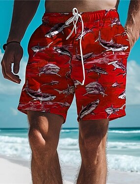 Муж. Акула Плавки Пляжные шорты Купальные шорты Нормальная Отпуск Гавайский Праздник Отпуск Праздники Пляж Кулиска с сетчатой подкладкой Эластичная талия Дизайнер Одежда