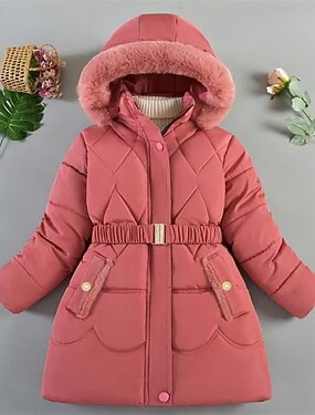 Девочки 3D Полотняное плетение Пальто Пух Длинный рукав Осень Зима Активный Очаровательны Дети (1-4 лет) 3-6 лет Отпуск Для улицы Стандартный