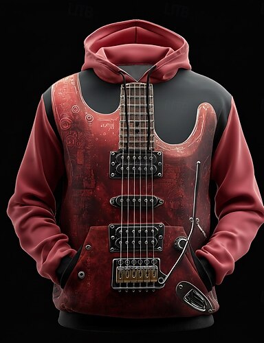 Муж. 3D-печати Гитара Толстовка Мода Круто Вырез под горло Дом Для вечеринок Уличная одежда Красный Оранжевый Кулиска Осень Зима Дизайнер