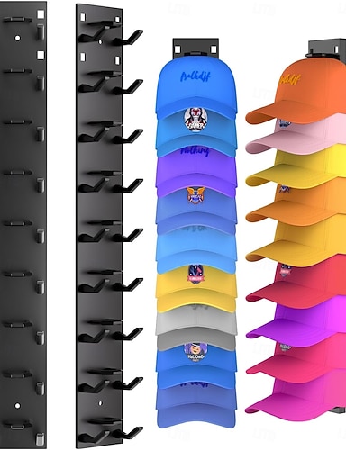 Органайзер для бейсболок на 2 штуки, прочная настенная вешалка для шляп с клеевым креплением, многослойный держатель для хранения шляп, настенные крючки для шляп вмещают до 18 шляп для установки на