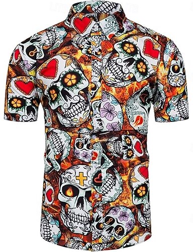 Хэллоуин Скелет Череп Тыква Гавайские рубашки Рубашка Алоха Рубашка на пуговицах С принтом Назначение Муж. Взрослые Хэллоуин Карнавал Маскарад 3D печать Для вечеринок Хэллоуин