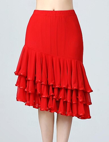 Бальные танцы Юбки Оборки Планка Жен. Выступление Учебный Завышенная талия Полиэстер
