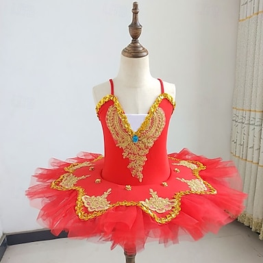 Детская одежда для танцев Балет Платье балетной пачки Платье Стразы Кружева Вышивка Девочки Выступление Учебный Ремешки Завышенная талия Сетка Спандекс