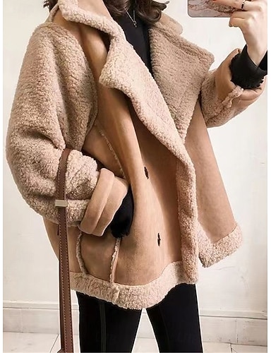 Жен. Зимнее пальто Пальто тедди Сохраняет тепло Удобный Карман Пуговицы Винтаж Контрастных цветов Отпуск На каждый день На выход выходные Обычная Лацкан Свободное облегание Длинный рукав