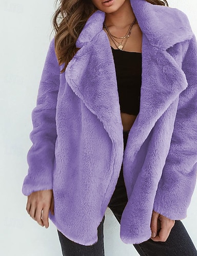 Жен. Пальто тедди Искусственное меховое пальто Сохраняет тепло Удобный Меха и кожа На каждый день Полотняное плетение Для улицы На каждый день На выход выходные Обычная Отложной Стандартный