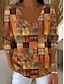 Жен. Вязаная ткань На каждый день Мягкий Графика Геометрический принт Контрастных цветов Рельефный узор V-образный вырез Пэчворк Трикотаж С принтом Длинный рукав Обычные топы Вязать
