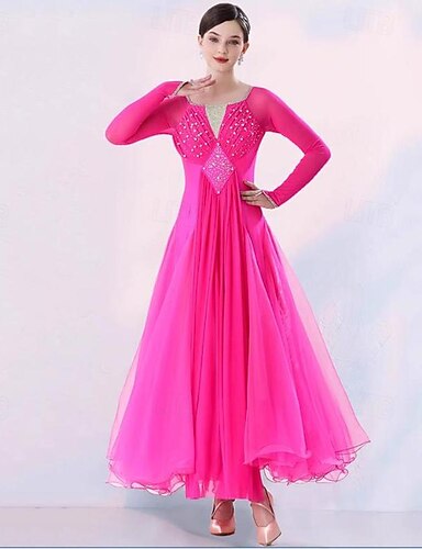 Бальные танцы Платье Планка Стразы Жен. Выступление Для вечеринок Длинный рукав Сетка Спандекс Органза