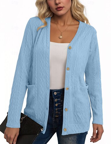 Жен. Кардиган Повседневные Цветочный принт Графика Геометрический принт Рельефный узор V-образный вырез Пуговицы С принтом Длинный рукав Обычные топы Вязать на открытом воздухе выходные