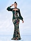 Футляр Вечернее платье Элегантный стиль Торжественное платье Официальные Свадьба В пол Длинный рукав Вырез под горло Пайетки с Рюши Пайетки Pазрез 2025