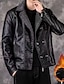 Муж. Кожаные куртки Флисовая жилетка Байкерская куртка Мотоциклетная куртка Отпуск Повседневные С защитой от ветра Сохраняет тепло Карман Осень Зима Полотняное плетение Мода Классика Лацкан Обычная