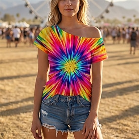 Ретро В стиле 1980-х Как у футболки На одно плечо Короткие рукава Хиппи Диско Галстук с принтом Маскарадный костюм Жен. Хэллоуин Карнавал музыкальный фестиваль Ретро-вечеринка Взрослые Футболка