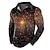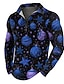 Муж. Графика Рубашки-поло на молнии Длинный рукав Футболки поло Лацкан На каждый день на открытом воздухе На каждый день 3D печать Осень Зима Синий Лиловый Оранжевый