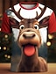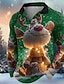 Новогодняя тематика Муж. Ослик Футболка С короткими рукавами Футболка 3D печать Вырез под горло Рубашка Повседневные Оригинальный рисунок Художественный Отпуск Для вечеринок Для улицы