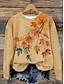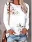 Жен. Футболка Цветочный принт Графика Растения Винтаж Стиль Классика Длинный рукав Вырез под горло Круглый вырез Обычные топы Повседневные С принтом Белый Весна Осень Зима