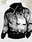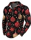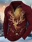 Новогодняя тематика Муж. Каждый Поло Длинный рукав Отложной Современное Для отдыха На каждый день фестиваль Молния 3D печать Весна Осень Зима Черный Красный Темно-зеленый