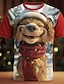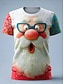 Новогодняя тематика Муж. Каждый Футболка С короткими рукавами Футболка 3D печать Вырез под горло Рубашка Повседневные Оригинальный рисунок Художественный Отпуск Для вечеринок Для улицы Белый Белый 2