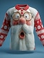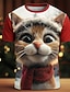 Новогодняя тематика Муж. Кот Футболка С короткими рукавами Футболка 3D печать Вырез под горло Рубашка Повседневные Оригинальный рисунок Художественный Отпуск Для вечеринок Для улицы Красный 3