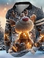 Новогодняя тематика Муж. Дед Мороз Рубашки-поло на молнии Длинный рукав Футболки поло Лацкан На каждый день на открытом воздухе На каждый день Фестивальный наряд 3D печать Весна Осень Зима