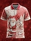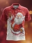 Новогодняя тематика Муж. Дед Мороз Поло С короткими рукавами Футболки поло Лацкан На каждый день Праздники Фестивальный наряд 3D печать Пуговицы Лето Красный 1 Красный 4 Красный 3
