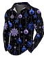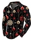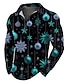 Новогодняя тематика Муж. Каждый В снежинку Рубашки-поло на молнии Длинный рукав Футболки поло Лацкан На каждый день на открытом воздухе Фестивальный наряд 3D печать Осень Зима Черный Красный Зеленый