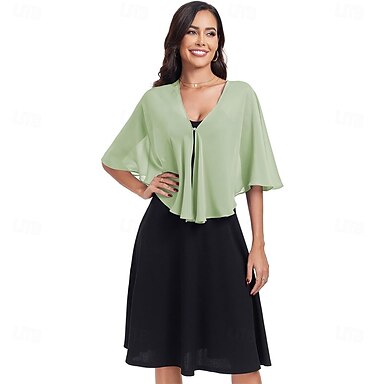 шаль& накидка женская накидка свадебная гостья элегантная защита от солнца шифоновая свадебная накидка с коротким рукавом чистого цвета для мероприятия / вечеринки весна& лето