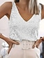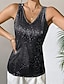 Жен. Блуза Топы с пайетками Полотняное плетение Элегантный стиль Стиль Западный Без рукавов V-образный вырез Обычные топы Праздники На выход Пайетки Черный Цвет шампанского Зеленый Лето Весна Осень