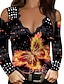 Жен. Блуза Графика Бабочка Винтаж Стиль Секси Длинный рукав V-образный вырез Обычные топы Повседневные Праздники На выход С принтом Лиловый Золотой Бледно-розовый цвет Весна Осень Зима