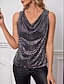 Жен. Блуза Топы с пайетками Полотняное плетение Элегантный стиль Винтаж Стиль Без рукавов НАЙКА НЕКО Обычные топы Праздники На выход Блеск Черный Красный Абрикосовый Лето Весна Осень