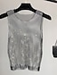 Жен. Блуза Топы с пайетками Майка-топ без бретелек Полотняное плетение Элегантный стиль металлический Стиль Без рукавов Вырез под горло Обычные топы Повседневные Праздники На выход Пайетки Блеск
