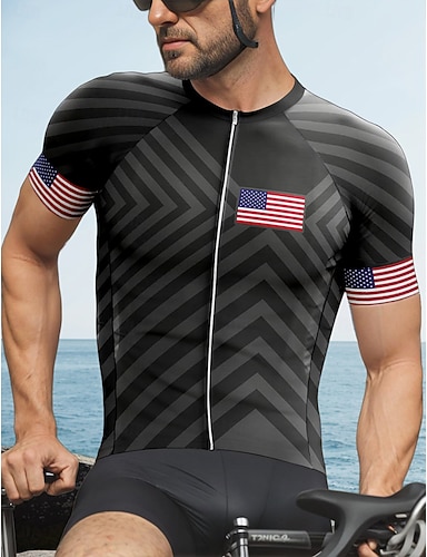 Муж. Велокофты Графика Геометрический принт День независимости С короткими рукавами Велоспорт Футболка Футболка Джерси Верхняя часть с 3 задними карманами