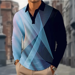 Муж. Геометрический принт Линии Поло Длинный рукав Футболки поло Лацкан На каждый день на открытом воздухе Для улицы Одежда для спорта и отдыха На каждый день 3D печать Пуговицы Весна Осень Зима