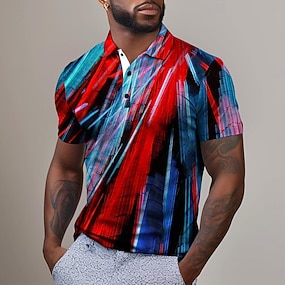 Муж. Геометрический принт Рубашки поло Рубашка для гольфа С короткими рукавами Футболки поло Рубашки с воротником Деловая одежда Рабочая одежда Официальная одежда Праздничная одежда Пуговицы 3D печать